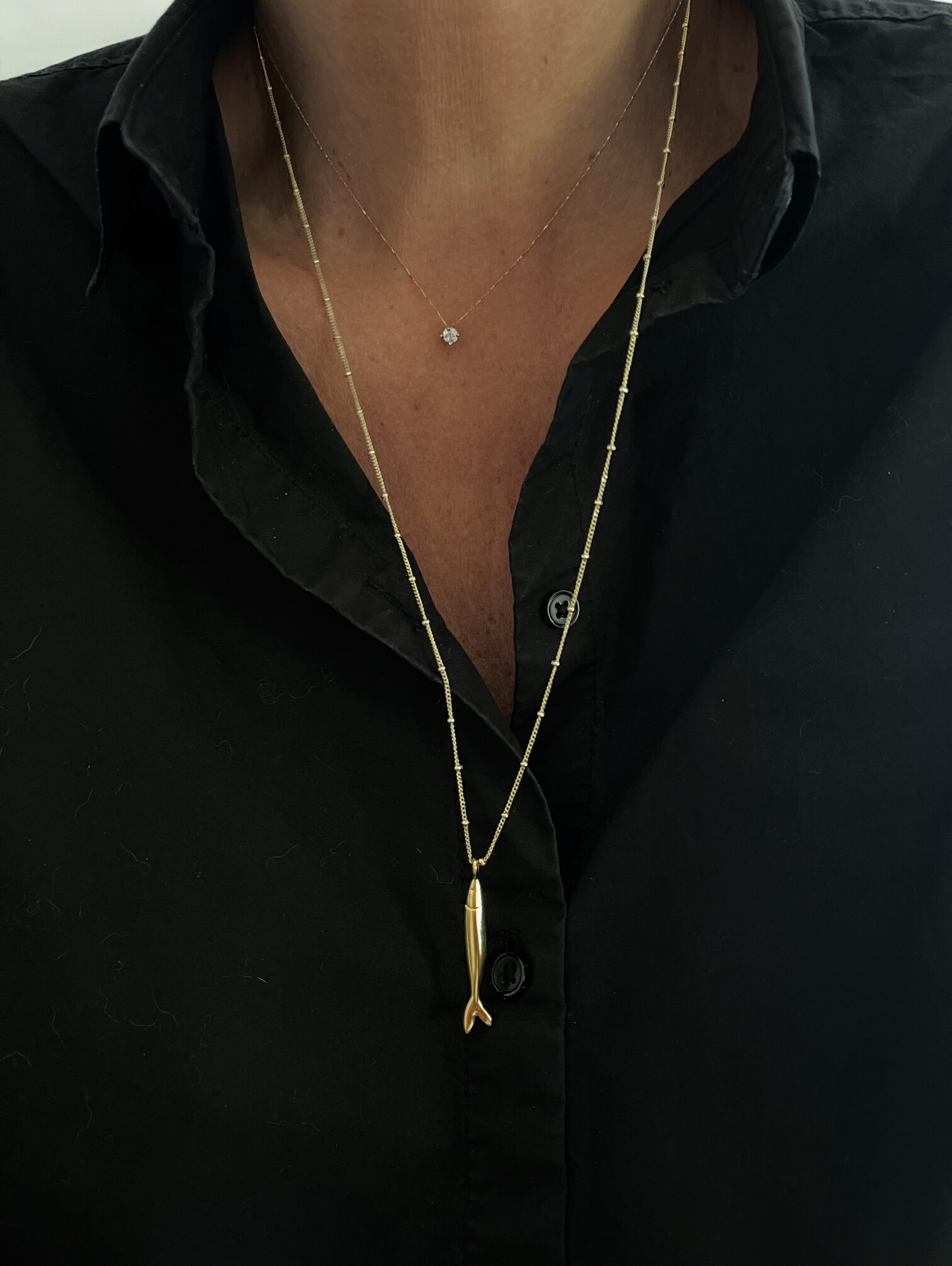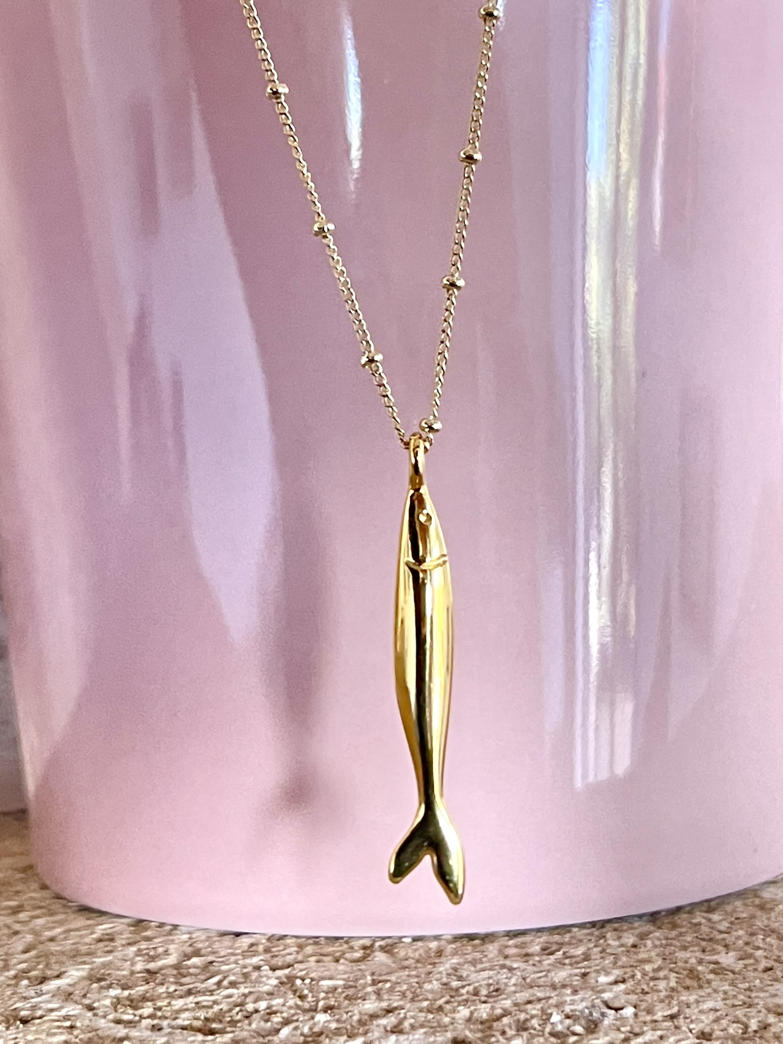 Coup de cœur pour ce joli poisson. Ses lignes fines et épurées se marient parfaitement avec cette longue chaine.